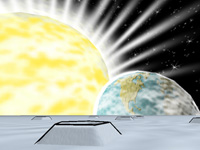 Potsdam, August 28th 2007 - MGIB-GIB's MAZE, 2nd Blood... ... - Done! I'm making unexpectably good progress in redesigning the basic sceneries! Number three of four is finished and - I think - doesn't look too bad as well, especially for people who like cheesy moons. But judge for yourself: Screenshot from the stand-alone game on the Quake-III-engine (click on the image for a larger view)